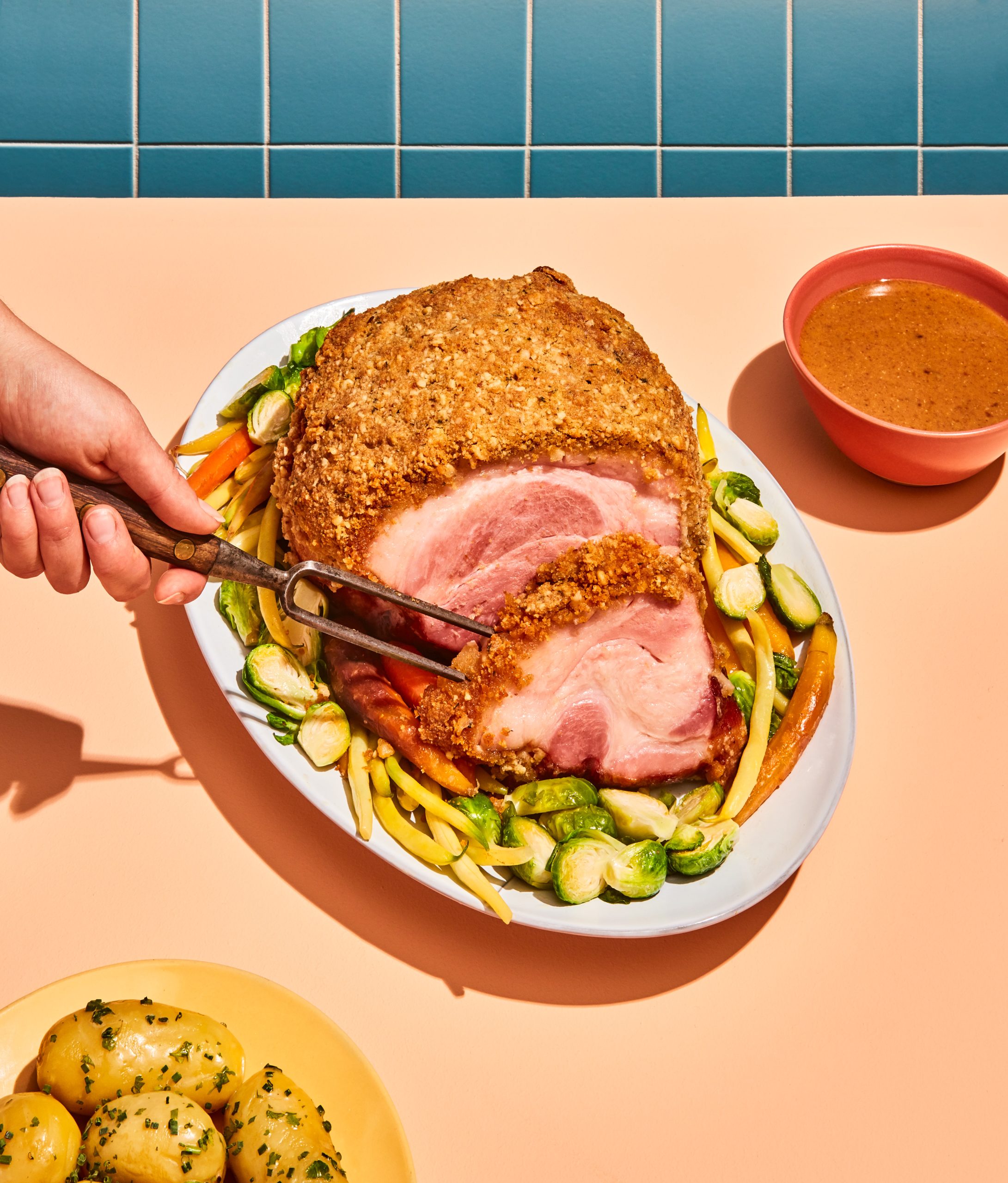 Envie de faire changement pour votre prochain souper de famille? Ce jambon en croûte de noix de macadam est le plat parfait pour impressionner la visite! Avec sa sauce caramel à l'érable, rehaussée d'une touche d'orange et de poivre du Sichuan, chaque bouchée est un vrai délice. C'est le genre de recette qui sent bon dans toute la maison et qui promet de régaler tout le monde!